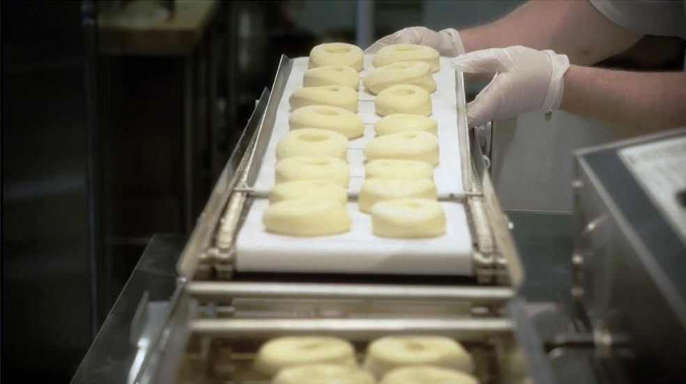 Der Einzugstisch wird direkt über die Donut-Anlagen betrieben und benötigt somit keeinen eigenen Stromanschluss. Er passt für die Donut-Anlagen Mark II, Mark V und die ältere Maschinenausführung Mark IX..