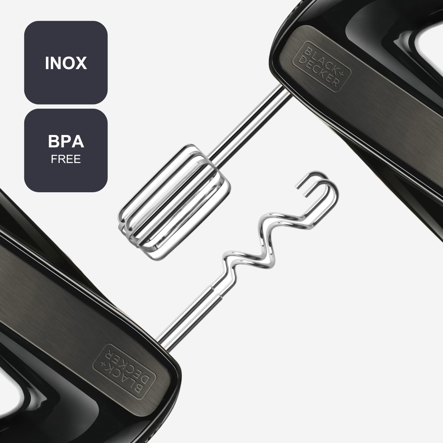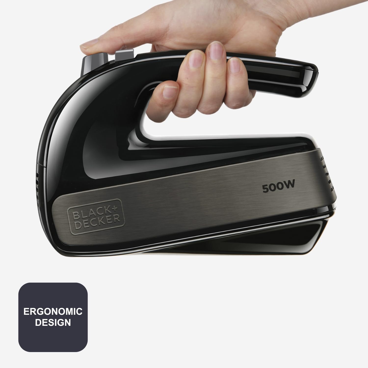 Black+Decker 500W Stainless Steel Hand Mixer with 5 Speeds