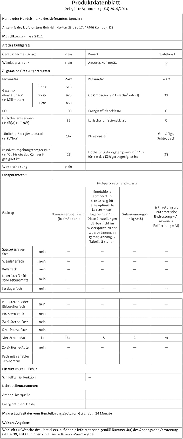 Bomann GB 341 Compact 31L Mini Freezer Box with Reversible Door