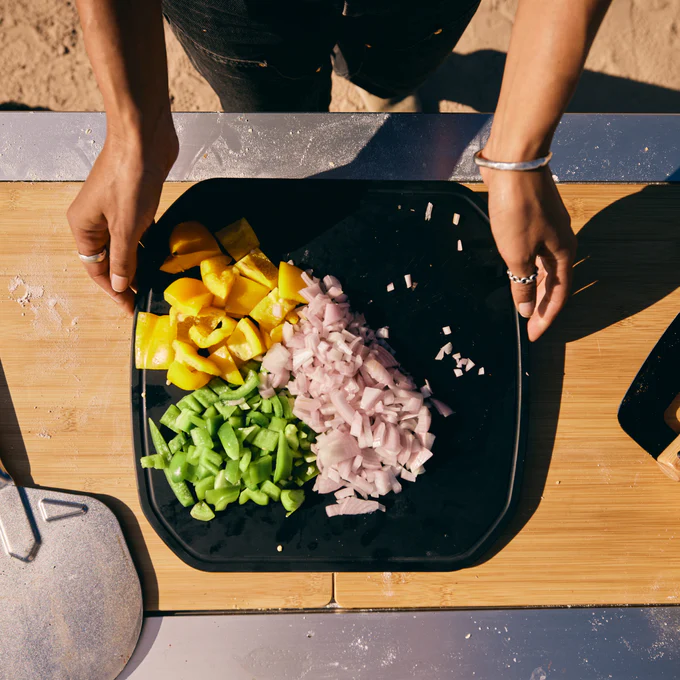 Vielseitige Einsatzmöglichkeiten: Nutzen Sie das Brett zum Schneiden von Zutaten, zum Servieren frisch gebackener Pizzen oder als zusätzliche Arbeitsfläche bei Ihren Outdoor-Kochabenteuern.