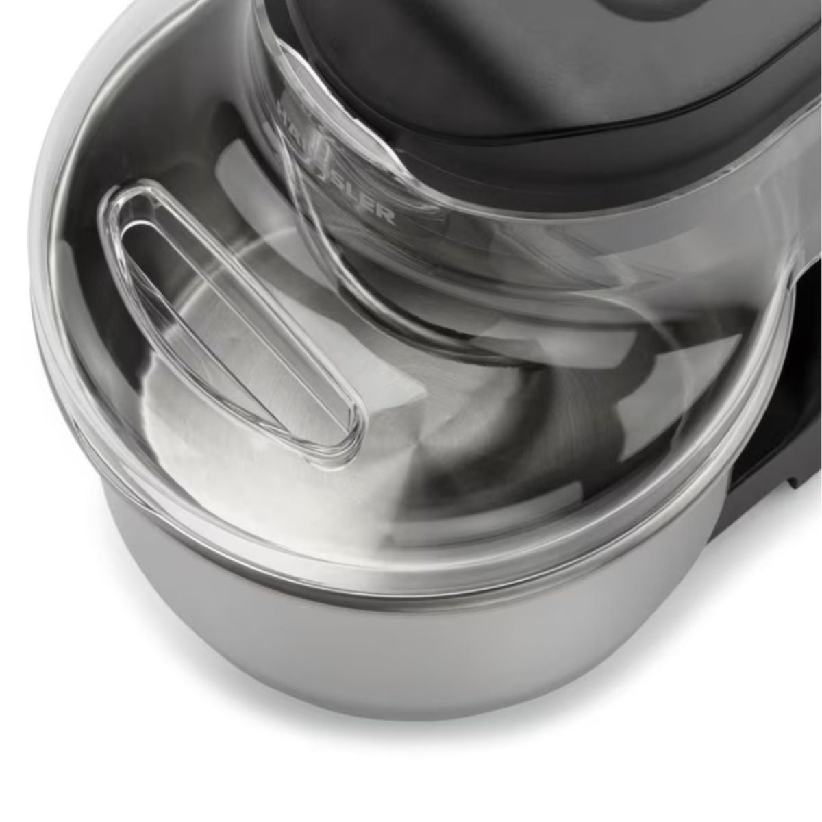 Neben dem Kneten überzeugt die NOVA auch beim Rühren und Schlagen. Mit dem optionalen Rührpaddel gelingen Rührteige, Füllungen und Cremes mühelos, während der große Schneebesen durch das gegenläufige Schüsselsystem für luftige Ergebnisse bei Sahne oder Eischnee sorgt. Kontaktlose Sensoren überwachen zudem die Position des Kopfes sowie den Sitz von Schüssel und Haube – für maximale Sicherheit im täglichen Gebrauch.